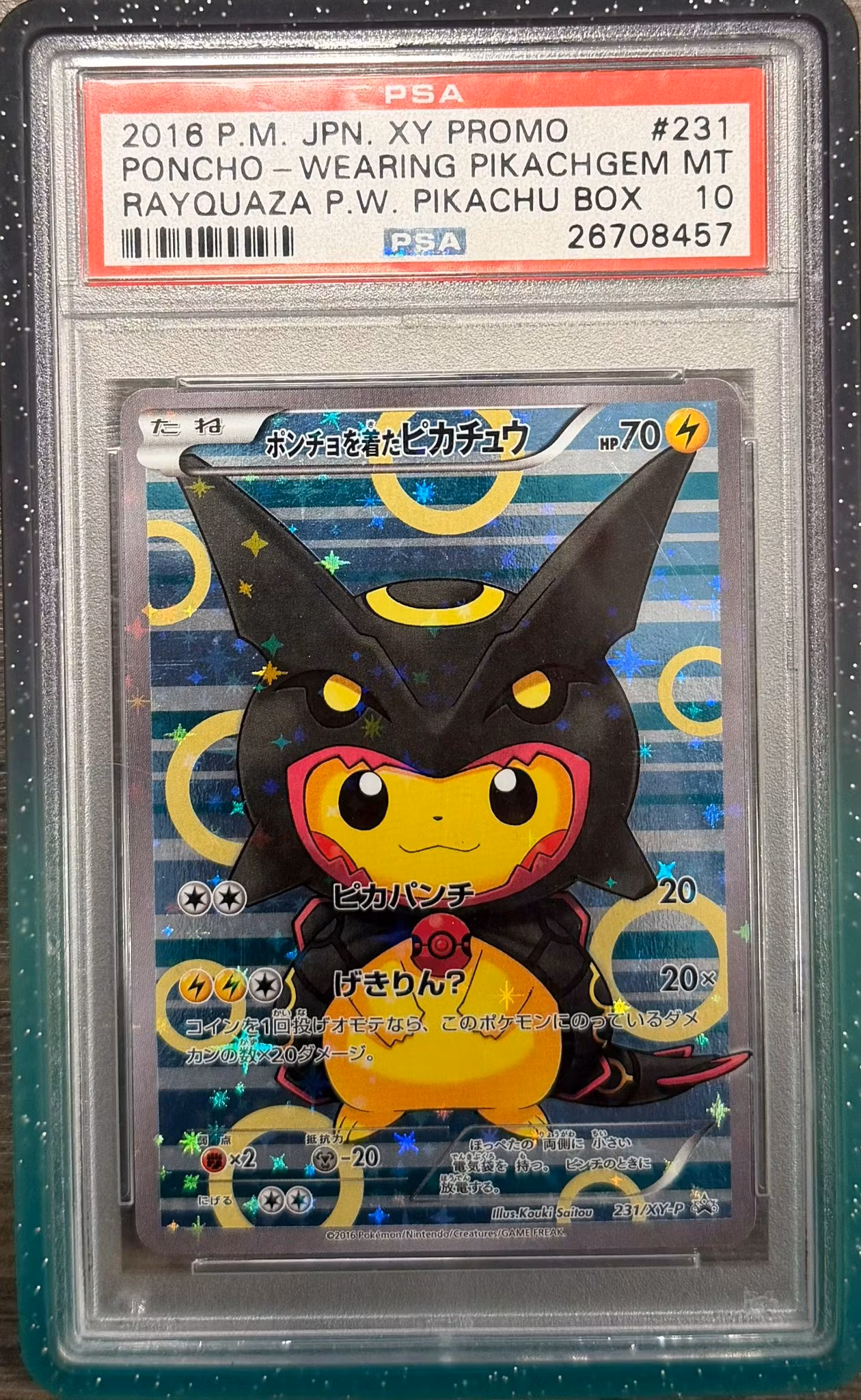 Poncho Pikachu Rayquaza Japansk Promo 231 PSA 10